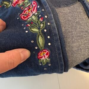 Suzanne Somers Embroidered Floral Rhinestone Denim Shirt Size S Hook Closure