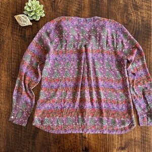 Nice preowned condition with no flaws to note. 100% silk. Buttons down the front. Pretty floral pattern.
