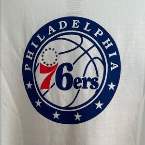 Sixers fans you need this tee! NBA licensed t-shirt featuring NBA and Sixers logo. Size large. 100% cotton.