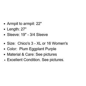 Chicos Traveler Top 3 Women's XL Plum Eggplant Purple Slinky Stretch Knit Pullover Blouse