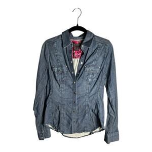 White House Black Market Dark Wash Denim Top With Snap Front and Pockets Size 2