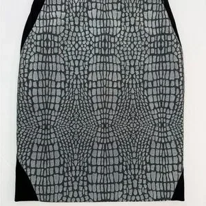 Excellent preowned condition. Zipper on side. Beautiful silver and black skirt for work or night out.