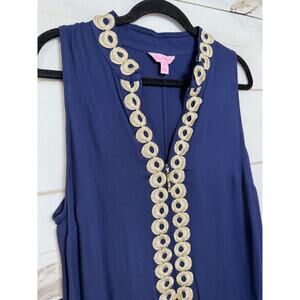 Lilly Pulitzer Dress Size 12 Navy Sleeveless Gold Detailing