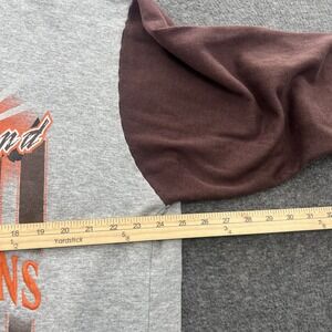 This Vintage Cleveland Browns Sweatshirt in Men's XL features a nostalgic 90s color block design with an embroidered NFL logo. Made from cozy fleece fabric, this pullover sweatshirt is perfect for all seasons with its hooded style and drawstring closure. The gray sweatshirt with a crew neck showcases the classic Cleveland Browns character and is machine washable for easy care. Ideal for fans of football, gym training, and hiking, this sweatshirt from Teamwork is a must-have for any vintage sports enthusiast.