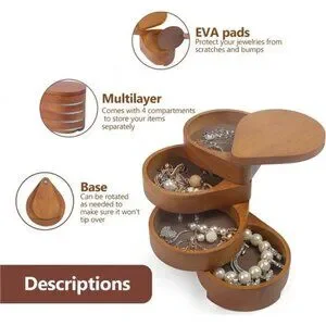 Thoughtful Details: There's an EVA pad on the inside of each compartment to protect your jewelries from scratches and bumps, the base can be rotated as needed to make sure it won't tip over when you move any of the compartments.