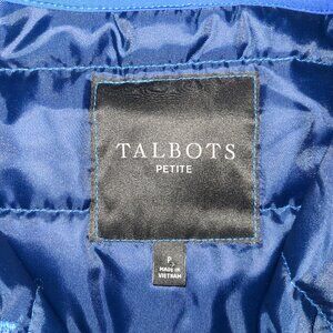 Talbots Petite P Bright Blue Button Closure Puffer Coat Jacket No Collar