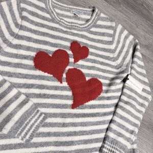 NWT Cupcakes and Cashmere Women's Medium Gray White Striped Red Heart Sweater