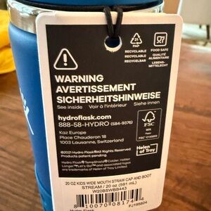 New in box Sleek Hydro Flask in cobalt blue 20 oz wide mouth with straw