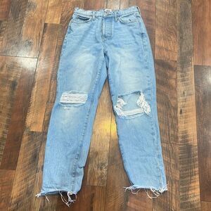 Great pair of button fly jeans. Slim straight style. Waist is 13 inches across with a rise of 10.5 inches and a 26 inch inseam