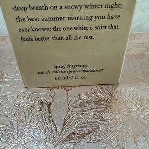 It is described as a clean and fresh fragrance with notes of water lily, leafy greens, and frosted musk.