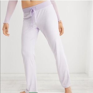 Cozy velour pants by Aerie Real Good line featuring elastic waistband with drawcord, low-rise waist, and slim flare fit