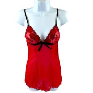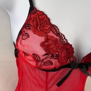 Escante Women's Sheer Babydoll Lingerie Nightie Set Red - Size Large