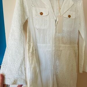 NWT Lenni The Label Elegant white eyelet lace jumpsuit with button details. Perfect for a chic look.