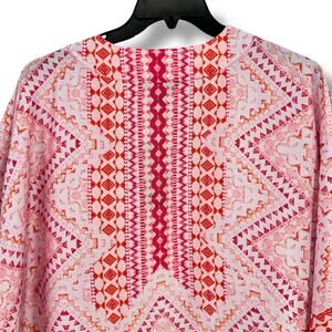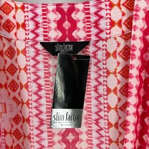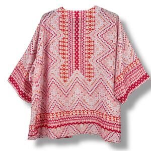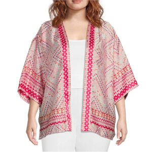 Slim Factor Satiny Mosaic Tile Open Front Short Sleeve Kimono Shirt Plus Sz 3X