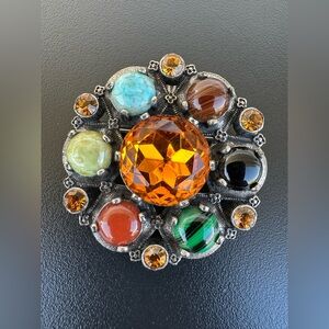 Vintage 1960s Scottish Celtic Knot Silver Agate Glass Art Brooch