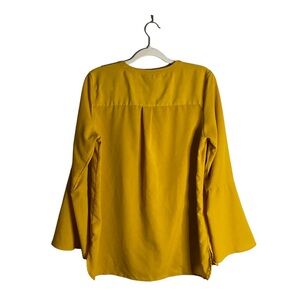 Banana Republic Women's Yellow Collarless Split Long Sleeve Ruffle Blouse