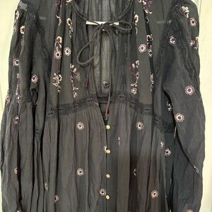 FREE PEOPLE BLUE Floral Embroidered Maxi Dress WITH BODY SUIT UNDERNEATH.