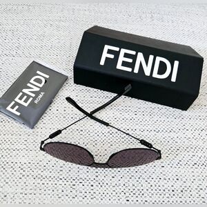 NWT FENDI Black Metal Sunglasses with Dark Oval Lenses