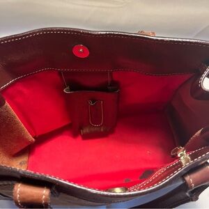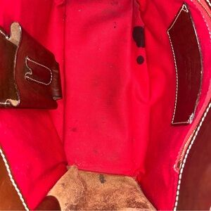 A couple minor spots on exterior and ink stain on interior. Leather in great condition.