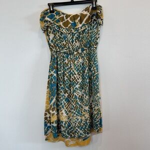 Pre-owned in excellent condition. Lightweight and breathable, this 100% silk strapless dress by Postela is perfect for summer. Flowy silhouette with soft lining for comfort. Great for vacations, brunch, or casual outings.