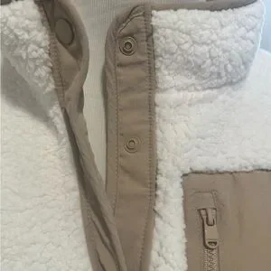 32 Degrees White and Camel Snap Front Sherpa Jacket