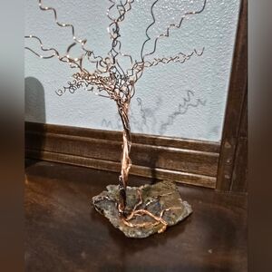 Elegant copper wire tree sculpture on a natural stone base. Perfect for adding a touch of artistry to your home decor.