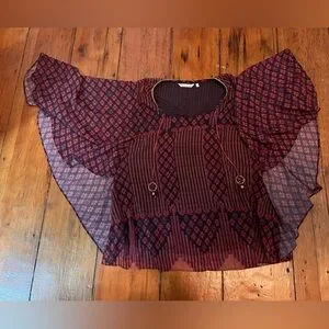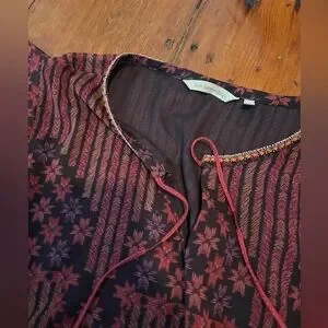 Soft Surroundings Alicia chiffon batwing blouse split neck tassel women’s large