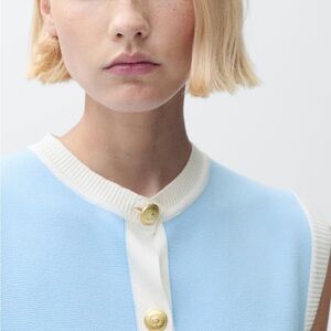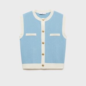 NWT MANGO Women's Contrast Piping Knitted Waistcoat Sweater