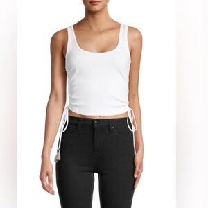 BCBG Multicolored Tassel Side-Drawstring Cropped Tank Top White