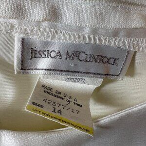 VTG Jessica Mcclintock Girls Ivory Satin & Lace Dress Size 14 Embroidered lined
