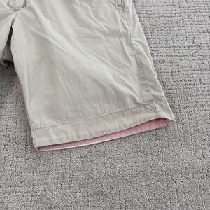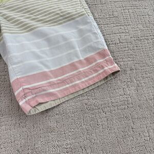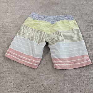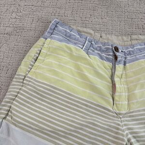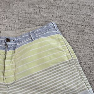 Elevate your summer wardrobe with these stylish Tailor Vintage reversible shorts. Made with high-quality cotton material, these shorts feature a colorful striped pattern, zip and button closure, and flat front design. The shorts come in a size 32 waist and have a 10-inch inseam.