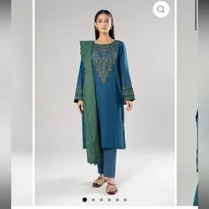 M. BASICS by Maria. B. Elegant Blue and Green Embroidered Women's Dress
