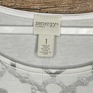 Zenergy by Chico's Ombre Foil Top Short Sleeve Optic White SZ 1 Medium NWT