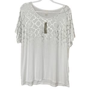 Zenergy by Chico's Ombre Foil Top. Style# 570205586. Size 1. Color ~ Optic White. Short Sleeve. New with tags. Measurements are in the pictures.