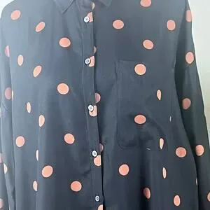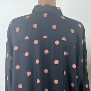 Loft Black with Tan Polka Dots Long Sleeve Collared Blouse Oversized Small