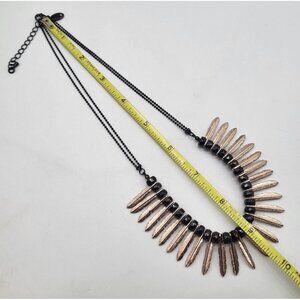 Charming Charlie Black Gold Tone Feather Dangle Fringe Statement Necklace