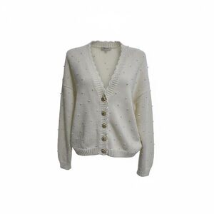 Vtg Knit Cardigan Retro Academia Granny Sweater Cottage Shabby Pearls Large