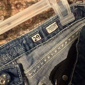 Miss Me Y2K Blue Denim Jeans with Silver Button and Cowhide Detail Size 29