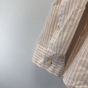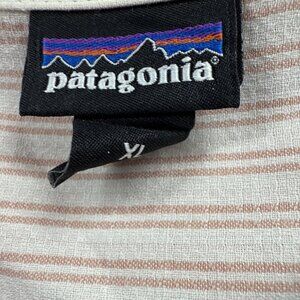 Patagonia Women's Top Blouse XL Blush Pink Stripe Organic Cotton Long Sleeves
