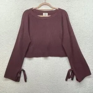 Wilfred Aritzia Sweater Womens XS Merino Wool Cropped Tie Cuff Bell Sleeve