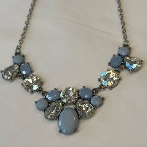 Blue Gemstone Silver Necklace with Sparkling Crystals
