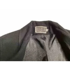 This beautiful Spencer Douglas pea coat is the perfect addition to any women's wardrobe. The black and tan wool coat comes in a size 10 with shoulder pads and is great for any occasion, whether it's casual, formal, or business. The stylish coat is designed with a pea coat style, making it a timeless piece that will never go out of style.