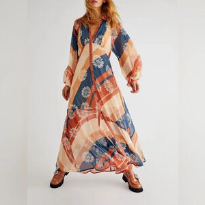 Free People Daria Shirtdress Floral Maxi Size Small Button Up Boho Flowy Retro