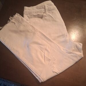 Stylish white pants, distressed with a comfortable fit. Perfect for any occasion.