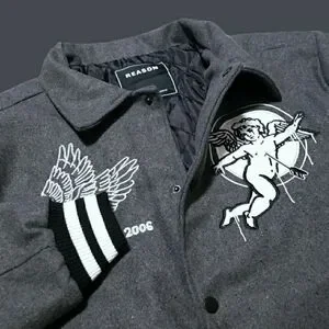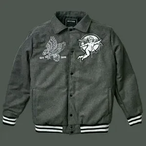Reason Charcoal Bomber Jacket with Embroidered Designs $159