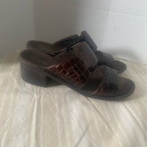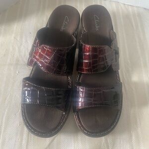 Clarks Women's Deanna brown Croc Print patent Leather Slide Sandals size 9