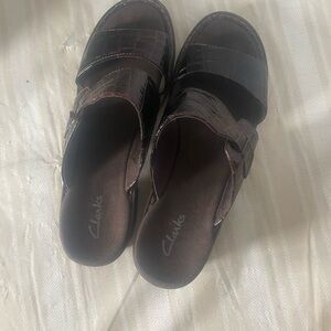 Step into comfort with Clarks Women's Brown Slide Sandals. Perfect for casual outings, these sandals offer a stylish and comfortable fit. Croc print . Size 9 . Preowned in great condition
