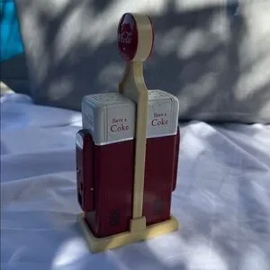 Charming Coca-Cola S&P shakers with base in red and cream. Perfect for collectors.