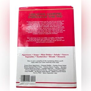 The VTG 1985 Campbell's Creative Cooking With Soup Recipes Cookbook Hardcover is a valuable resource for adult cooks interested in soups. Published by Beekham House, this cookbook by Campbell's Soup offers a variety of soup recipes and cooking tips. With special attributes like a dust jacket and illustrations, this cookbook is a must-have for those looking to expand their culinary skills in the subject of cooking, food, and wine.
