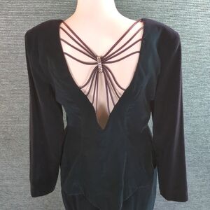 Stunning Nikki dark teal velvet two piece skirt set. Vintage 80s